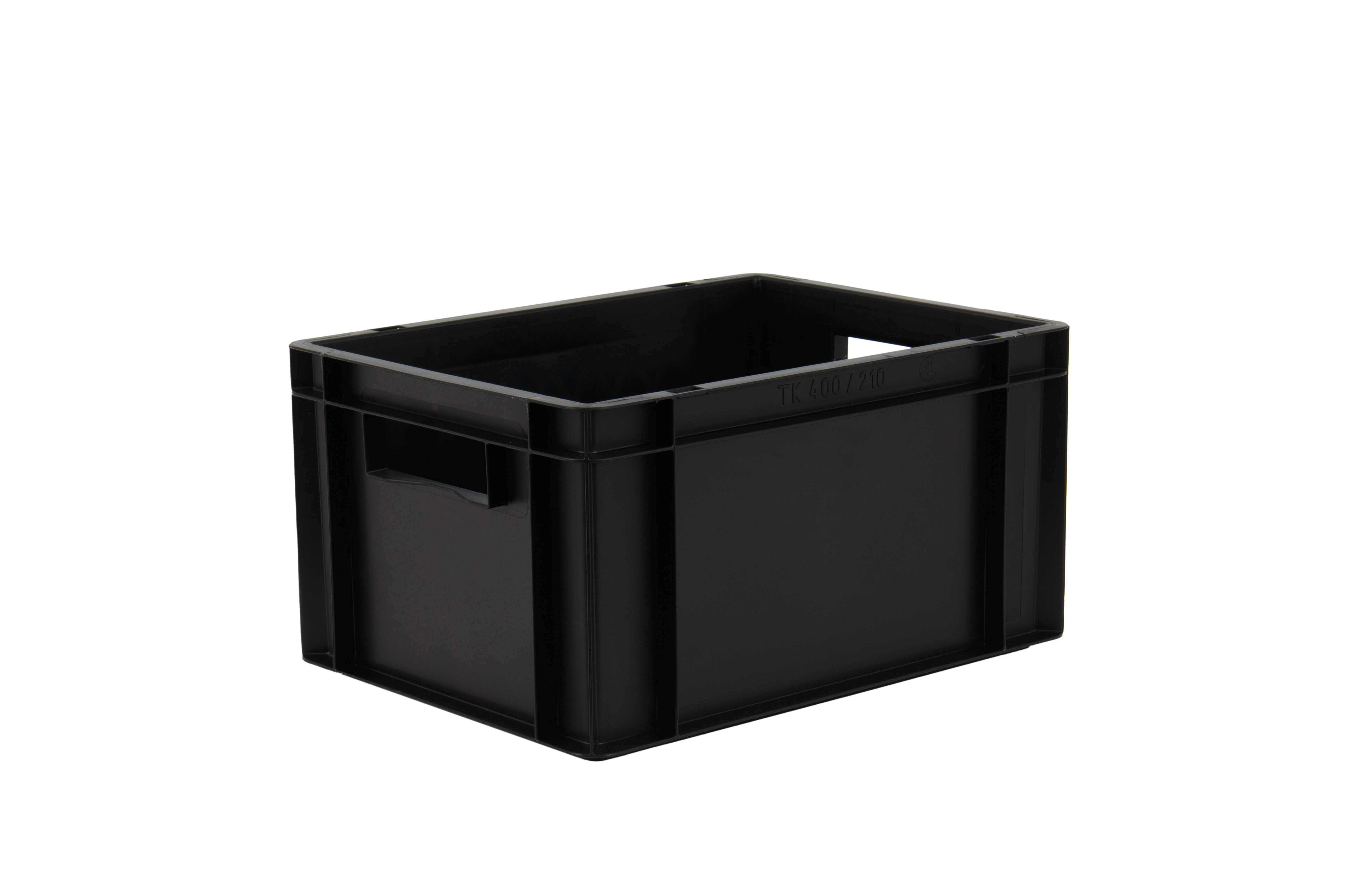 Being manufactured from conductive PP, it is also possible to transport electrically charged components. This 19 litre capacity stacking container weighs less than 1 kg with two comfortable ergonomic handles.