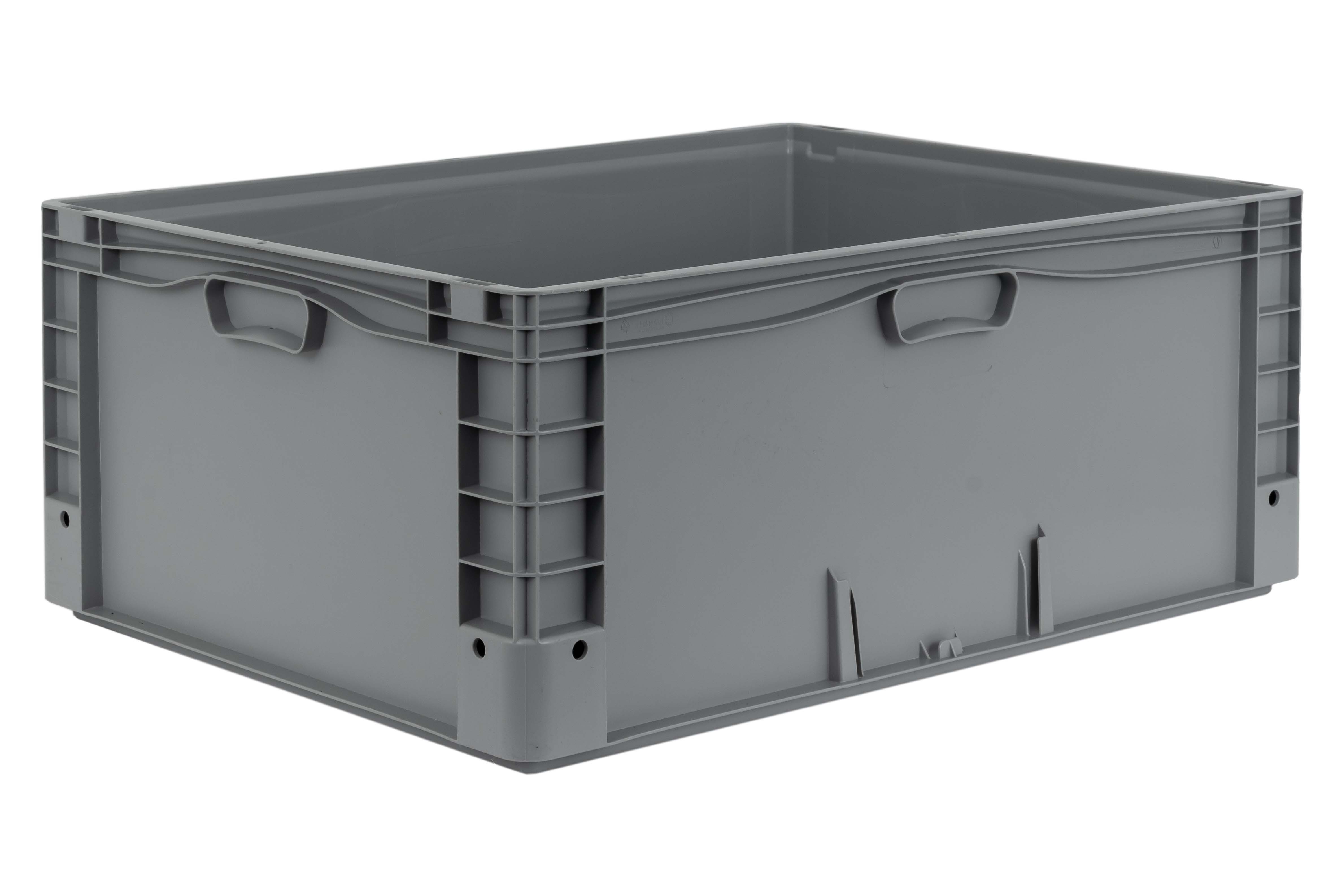 Basic information Article number: 01860320BV1 Article type: Stacking Boxes Color: grey Material : PP Shipping unit : 1 piece More product features Handles : recessed grip Description sides : closed Base design : closed Suitable for food-contact : suitable for food-contact Dimensions and loads External dimensions (approx.) : 800 x 600 x 320 mm Internal dimensions (approx.) : 766 x 567 x 316 mm Usable volume (approx.) : 126 l -