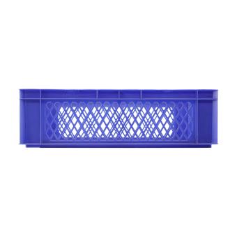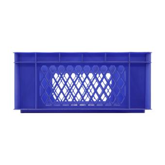 Laterally perforated stacking container with two ergonomic handles and 34 litres space for your goods at only 1.42kg empty weight. In a blue colour.