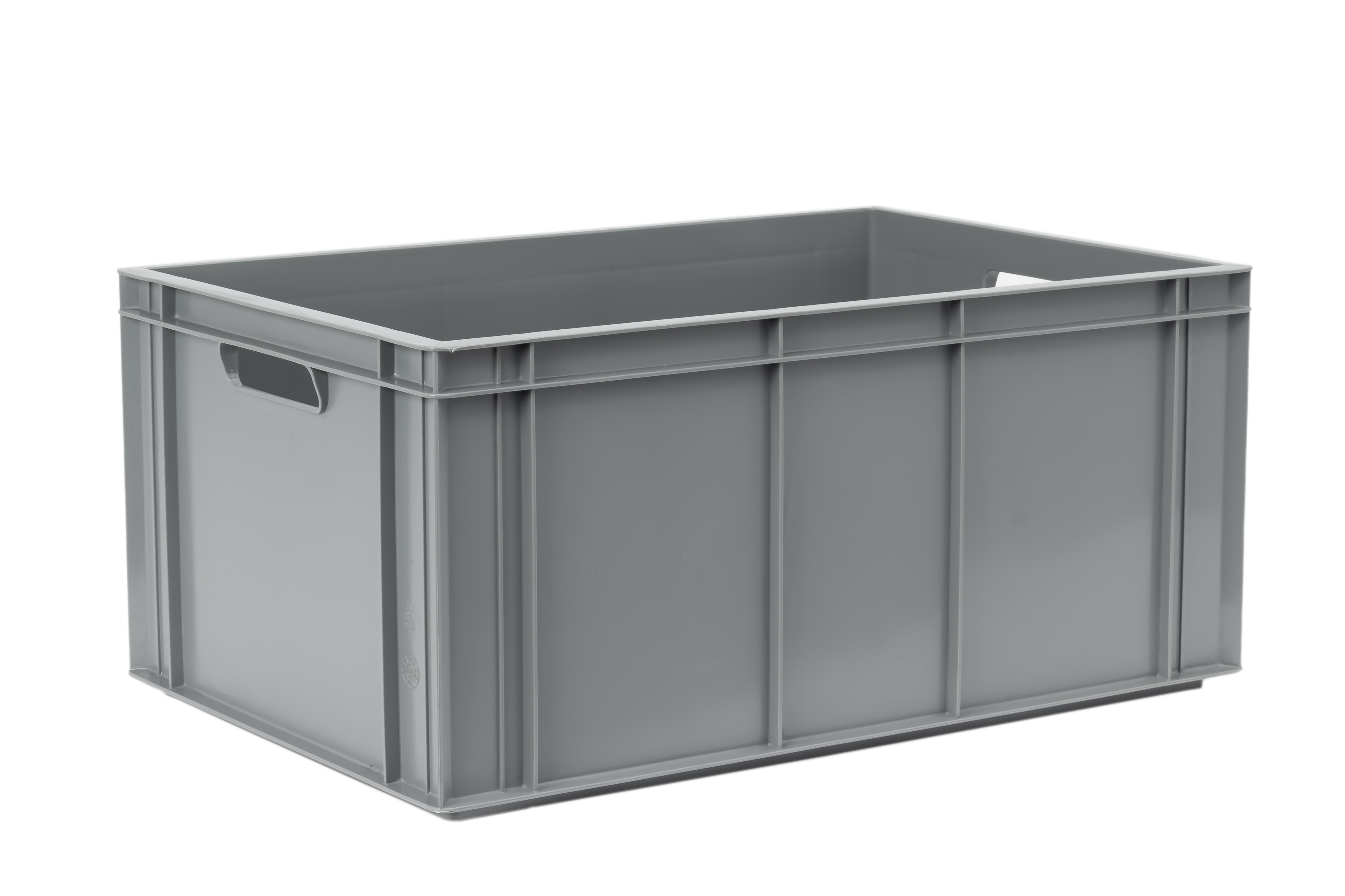 Basic information Article number: 01640262F Article type: Stacking Boxes Color: grey Material : HDPE Shipping unit : 1 piece Quantity per pallet : 28 pieces Quantity per carton : 2 pieces More product features Handles : two Description sides : closed Base design : closed, ribbed Dimensions and loads External dimensions (approx.) : 600 x 400 x 273 mm Internal dimensions (approx.) : 572 x 372 x 259 mm Usable volume (approx.) : 55 l -