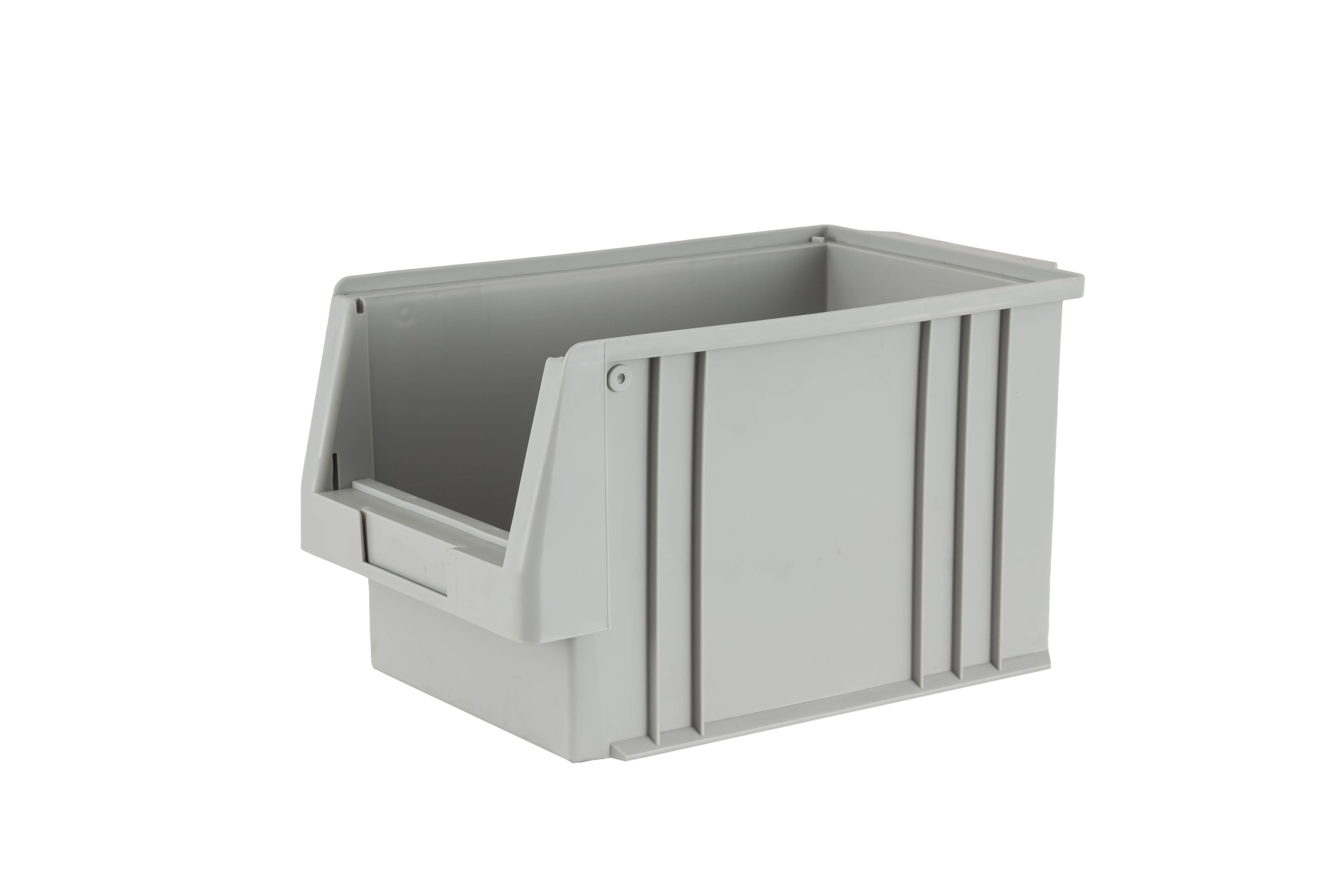Deep storage bin for sorting small to medium sized goods, with a load of 100kg with less than one kilogram of self-weight. Variant in grey.