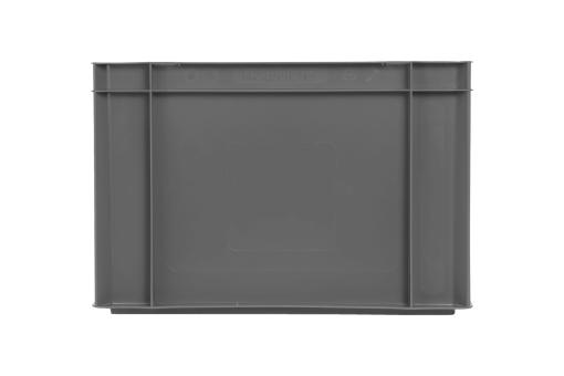 Basic information Article number: 01430270BEV Article type: Stacking Boxes Color: grey Material : PP Shipping unit : 1 piece Quantity per pallet : 56 pieces Quantity per carton : 4 pieces More product features Handles : two Description sides : closed Base design : solid, no ribs Suitable for food-contact : suitable for food-contact Dimensions and loads External dimensions (approx.) : 400 x 300 x 270 mm Internal dimensions (approx.) : 356 x 255 x 255 mm Load capacity stat. (approx.) : 40 kg Usable volume (approx.) : 23 l -