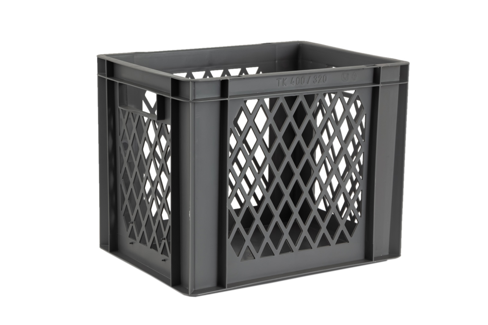 Basic information Article number: 01430320BFV Article type: Stacking Boxes Color: grey Material : PP Shipping unit : 1 piece Quantity per pallet : 48 pieces Quantity per carton : 4 pieces More product features Handles : two Description sides : perforated Base design : solid, no ribs Suitable for food-contact : suitable for food-contact Dimensions and loads External dimensions (approx.) : 400 x 300 x 320 mm Internal dimensions (approx.) : 356 x 255 x 305 mm Load capacity stat. (approx.) : 35 kg Usable volume (approx.) : 28 l -