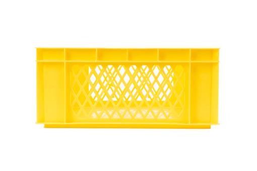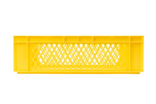 Laterally perforated stacking container with two ergonomic handles and 34 litres space for your goods at only 1.42kg empty weight. In a yellow colour.