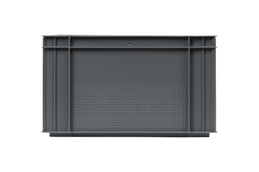 Basic information Article number: 01430234 Article type: Stacking Boxes Color: grey Material : HDPE Shipping unit : 1 piece Quantity per pallet : 64 pieces Quantity per carton : 4 pieces More product features Handles : two Description sides : closed Base design : closed, ribbed Dimensions and loads External dimensions (approx.) : 400 x 300 x 234 mm Internal dimensions (approx.) : 372 x 272 x 220 mm Usable volume (approx.) : 22 l -