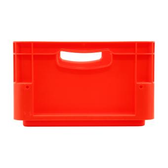 Basic information Article number: 01430180SR Article type: Stacking Boxes Color: red Material : PP Shipping unit : 1 piece Quantity per pallet : 104 pieces Quantity per carton : 8 pieces More product features Handles : two Description sides : closed Base design : solid, no ribs Suitable for food-contact : suitable for food-contact Dimensions and loads External dimensions (approx.) : 400 x 300 x 180 mm Internal dimensions (approx.) : 367 x 267 x 176 mm Load capacity stat. (approx.) : 20 kg Usable volume (approx.) : 15 l -