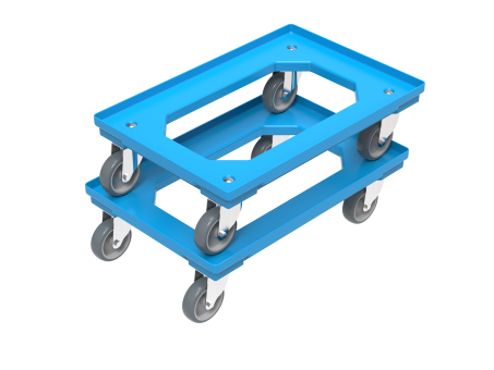 Basic information Article number: 08640009B Article type: Trolleys Color: blue Material : ABS Shipping unit : 1 piece Quantity per pallet : 80 pieces Swivel model : 4 swivel wheels More product features Additional product information: also available with brake suitable for container 600 x 400 mm and 400 x 300 mm Dimensions and loads External dimensions (approx.) : 612 x 412 x 171 mm Load capacity stat. (approx.) : 300 kg