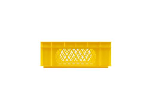Deze stapelbak met zijn inhoud van 28 liter en een ledig gewicht van slechts een kilo is dankzij de handige greeplijsten goed te verplaatsen en biedt door de geperforeerde wanden en bodem goed zicht op de goederen, een uitstekende luchtcirculatie en een afvoermogelijkheid voor vloeistoffen. Model in geel.