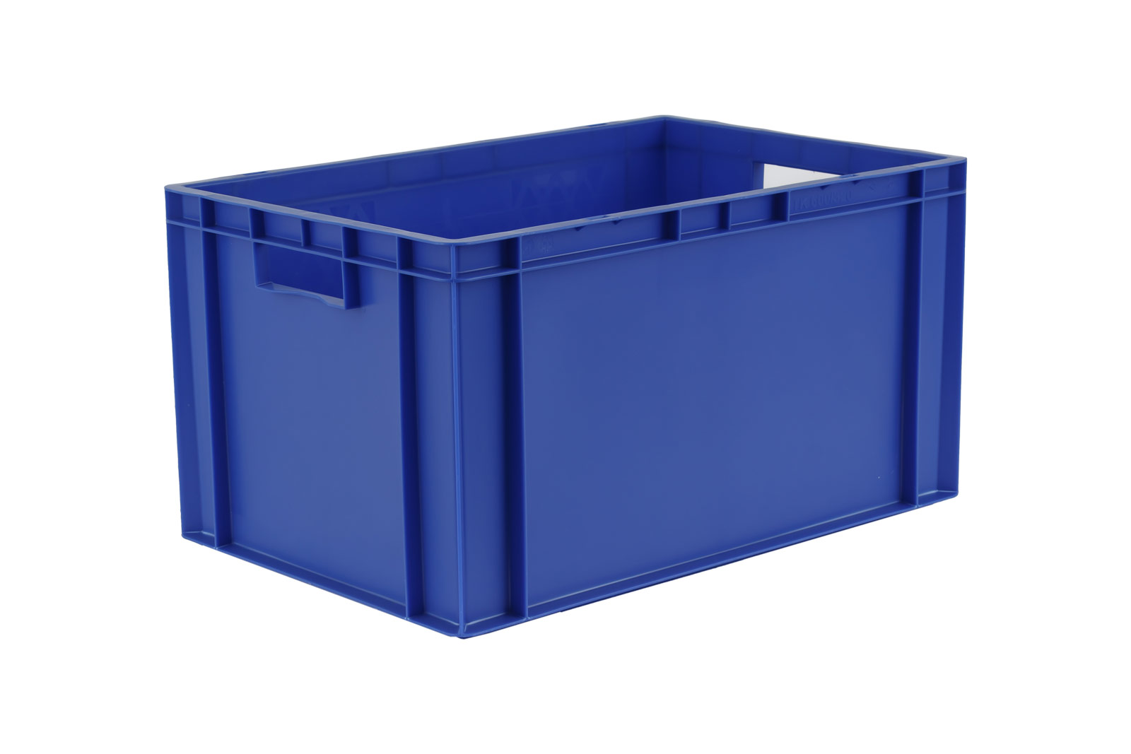 Basisgegevens Artikelnummer: 01640321AE Artikeltype: Stapelbakken Kleur: blauw Materiaal : PP Verzendeenheid : 1 stuk Aantal per pallet : 24 stuks Aantal per carton : 2 stuks Verdere producteigenschappen Grepen : twee Zijwanden : gesloten Bodem : gesloten, glad Geschikt voor levensmiddelen : geschikt voor levensmiddelen Afmetingen en lasten Buitenafmetingen (ca.) : 600 x 400 x 320 mm Binnenmaten (ca.) : 551 x 352 x 305 mm Statisch draagvermogen (ca.) : 60 kg Nuttig volume (ca.) : 59 l -