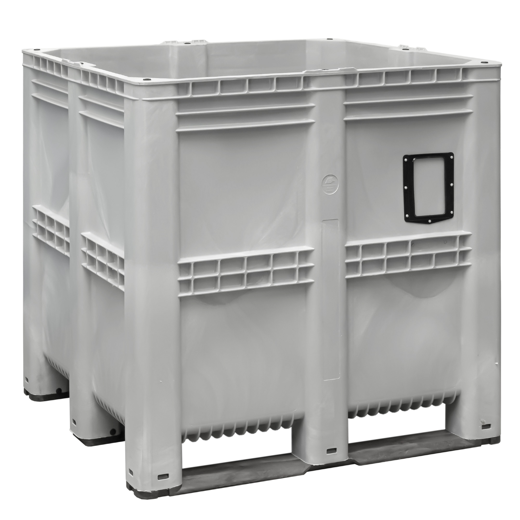 Basisgegevens Artikelnummer: 05991250H Artikeltype: Grootvolume bakken Kleur: grijs Materiaal : HDPE Verzendeenheid : 1 stuk Aantal per vrachtwagen : 42 stuks Pallettype : met 3 sledes Verdere producteigenschappen Zijwanden : gesloten Bodem : gesloten Geschikt voor levensmiddelen : geschikt voor levensmiddelen Extra producteigenschappen: De box is niet geschikt voor vloeistoffen en pasta's! Afmetingen en lasten Buitenafmetingen (ca.) : 1300 x 1150 x 1250 mm Binnenmaten (ca.) : 1165 x 1000 x 1085 mm Statisch draagvermogen (ca.) : 800 kg Nuttig volume (ca.) : 1400 l -
