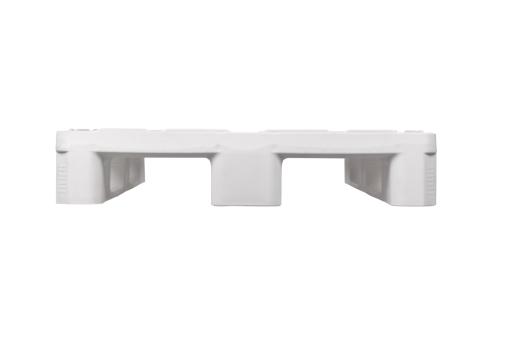 Hygiënische pallet van hoogwaardig HDPE, stabiele constructie dankzij drie sleden, met opstaande borgrand en gesloten bovendek. Heeft een draagvermogen van 4000kg bij een eigen gewicht van slechts 18kg. Uitgevoerd in wit.
