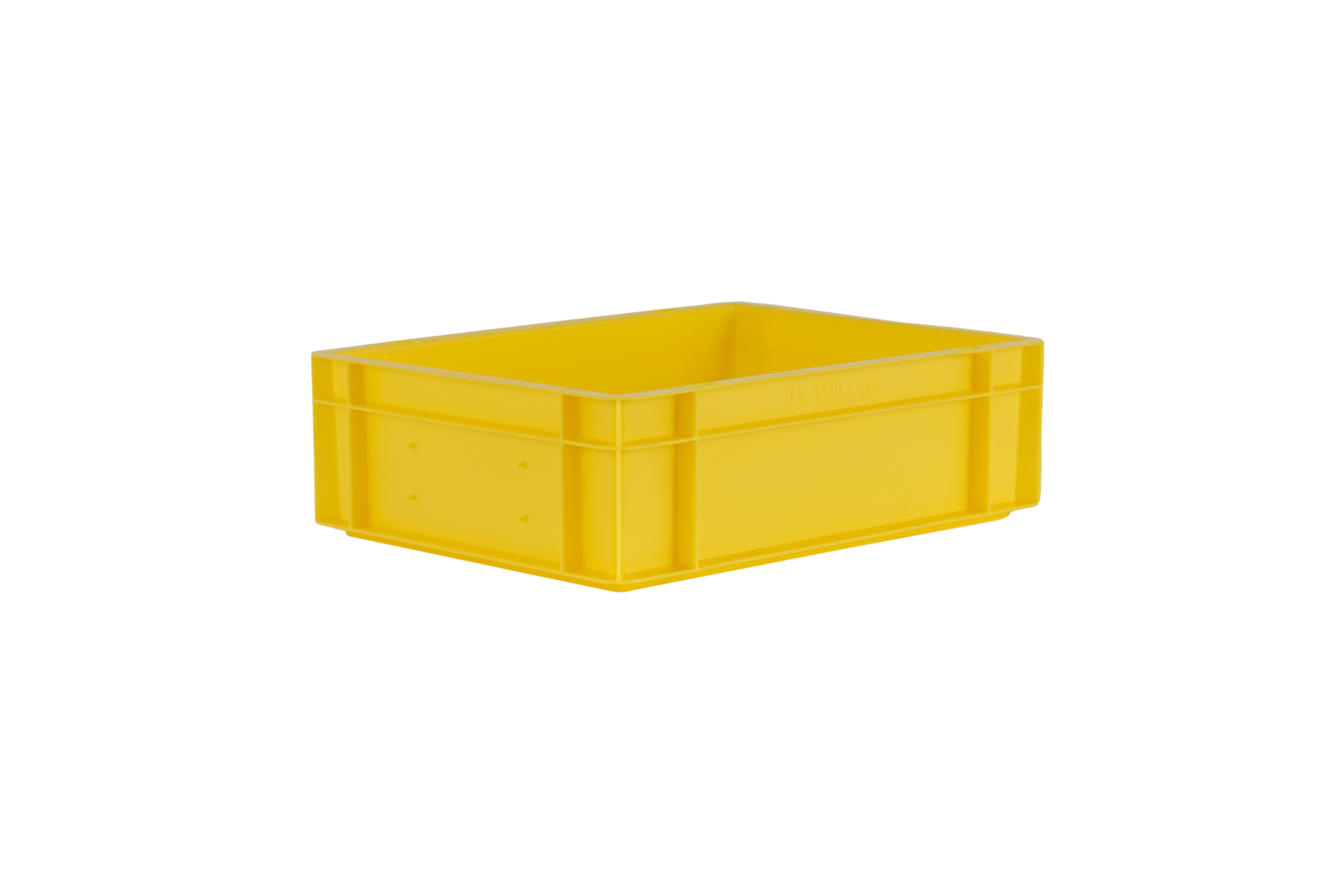 Basisgegevens Artikelnummer: 01430121BEA Artikeltype: Stapelbakken Kleur: geel Materiaal : PP Verzendeenheid : 1 stuk Aantal per pallet : 128 stuks Aantal per carton : 12 stuks Verdere producteigenschappen Grepen : gesloten handgrepen Zijwanden : gesloten Bodem : gesloten, glad Geschikt voor levensmiddelen : geschikt voor levensmiddelen Afmetingen en lasten Buitenafmetingen (ca.) : 400 x 300 x 120 mm Binnenmaten (ca.) : 356 x 255 x 110 mm Statisch draagvermogen (ca.) : 30 kg Nuttig volume (ca.) : 10 l -