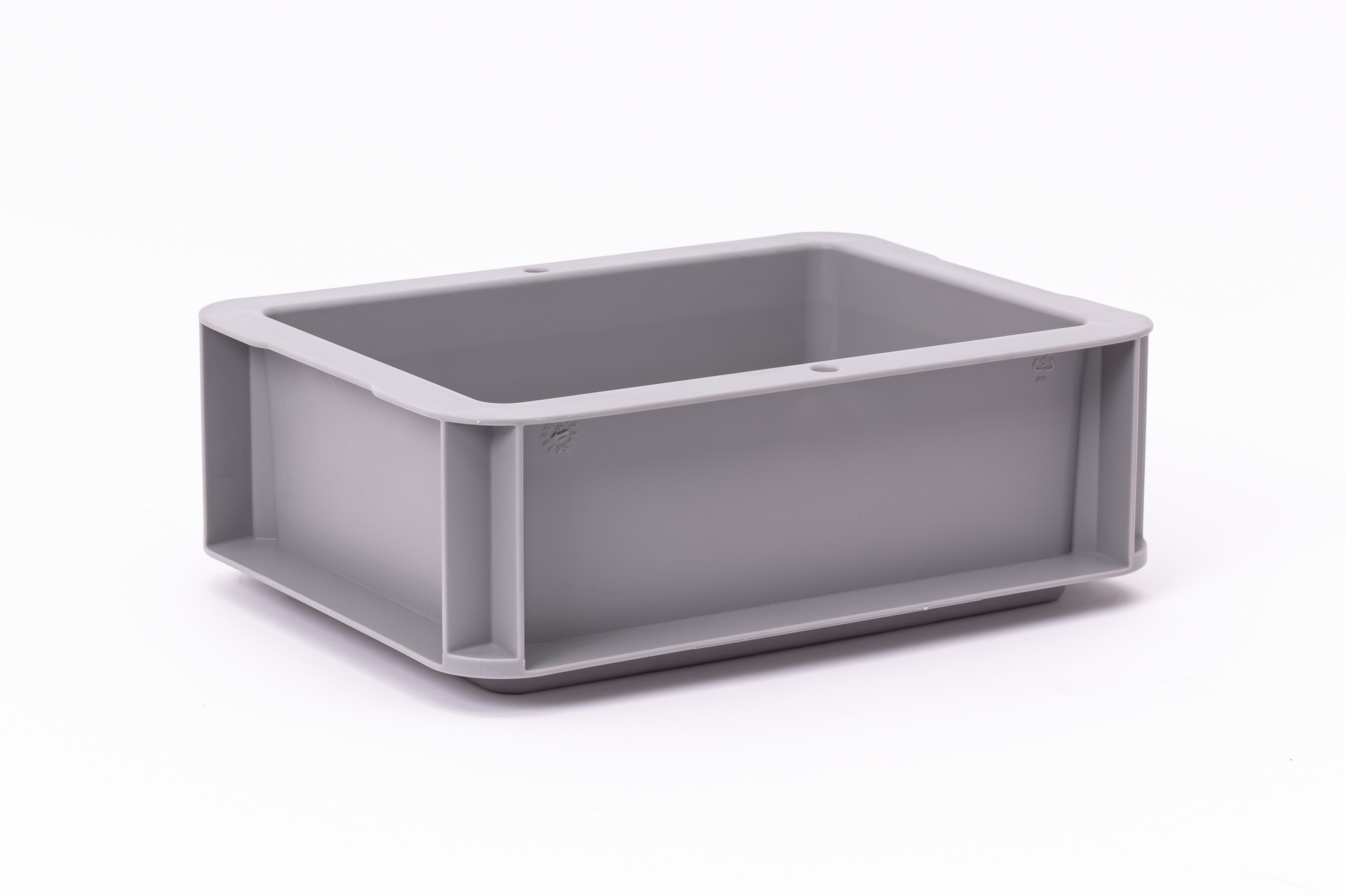 Base 2107 1 grijs - De kunststof stapelbak Base 2107 in industrieel grijs behoort dankzij de versterkte zijwanden tot de meest robuuste in zijn klasse en biedt een compacte liter nuttig volume.