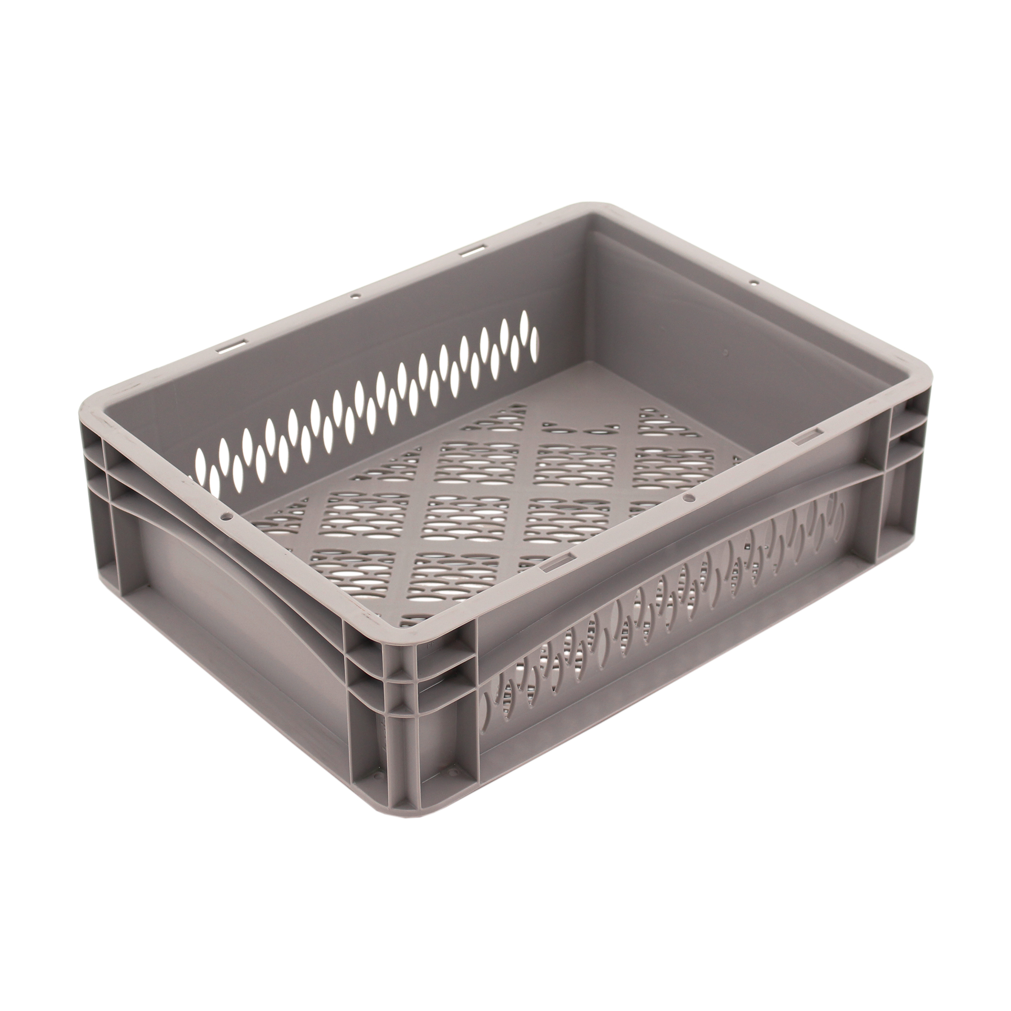 Basisgegevens Artikelnummer: 01430122BV2 Artikeltype: Stapelbakken Kleur: grijs Materiaal : PP Verzendeenheid : 1 stuk Aantal per pallet : 128 stuks Aantal per carton : 12 stuks Verdere producteigenschappen Grepen : gesloten handgrepen Zijwanden : geperforeerd Bodem : geperforeerd Geschikt voor levensmiddelen : geschikt voor levensmiddelen Afmetingen en lasten Buitenafmetingen (ca.) : 400 x 300 x 120 mm Binnenmaten (ca.) : 367 x 268 x 108 mm Statisch draagvermogen (ca.) : 30 kg Nuttig volume (ca.) : 10 l -