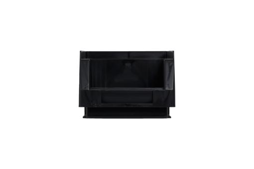 Praktische magazijnbak van nog geen kilo die tot 25kg kan worden belast, van geleidend PP, uitgevoerd in zwart.