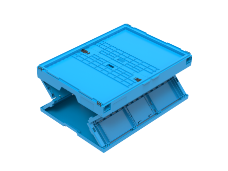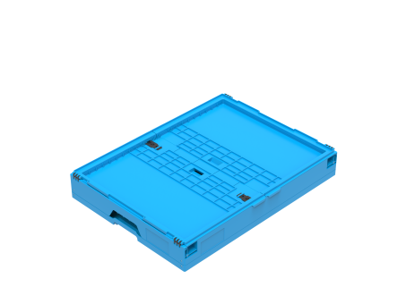 Solide vouwkrat met scharnierende kleppen aan de lange zijden voor bescherming, ribbenbodem, 165 liter inhoud en twee praktische open handgrepen. In WALTHER-blauw.