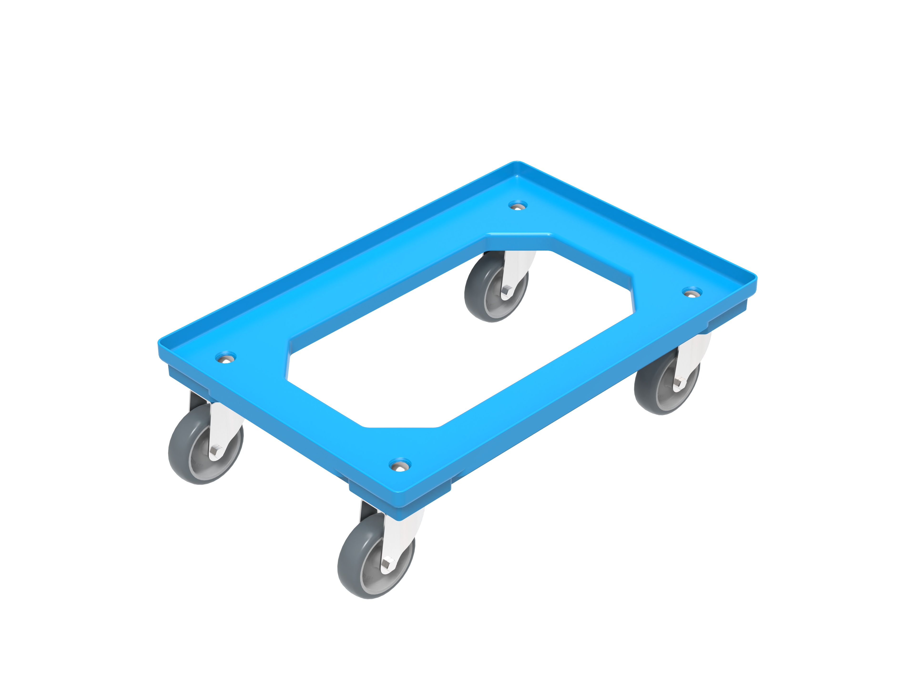 - Aufgrund der geringen Höhe von 171 mm hat der Wagen eine geringe Stapelhöhe. Zusätzlich wird beim Rollwagen 6410 V1 ABS verwendet, da es eine noch höhere Steifigkeit und Festigkeit als PP aufweist. ABS hat eine besonders gute Schlag- und Kratzfestigkeit.